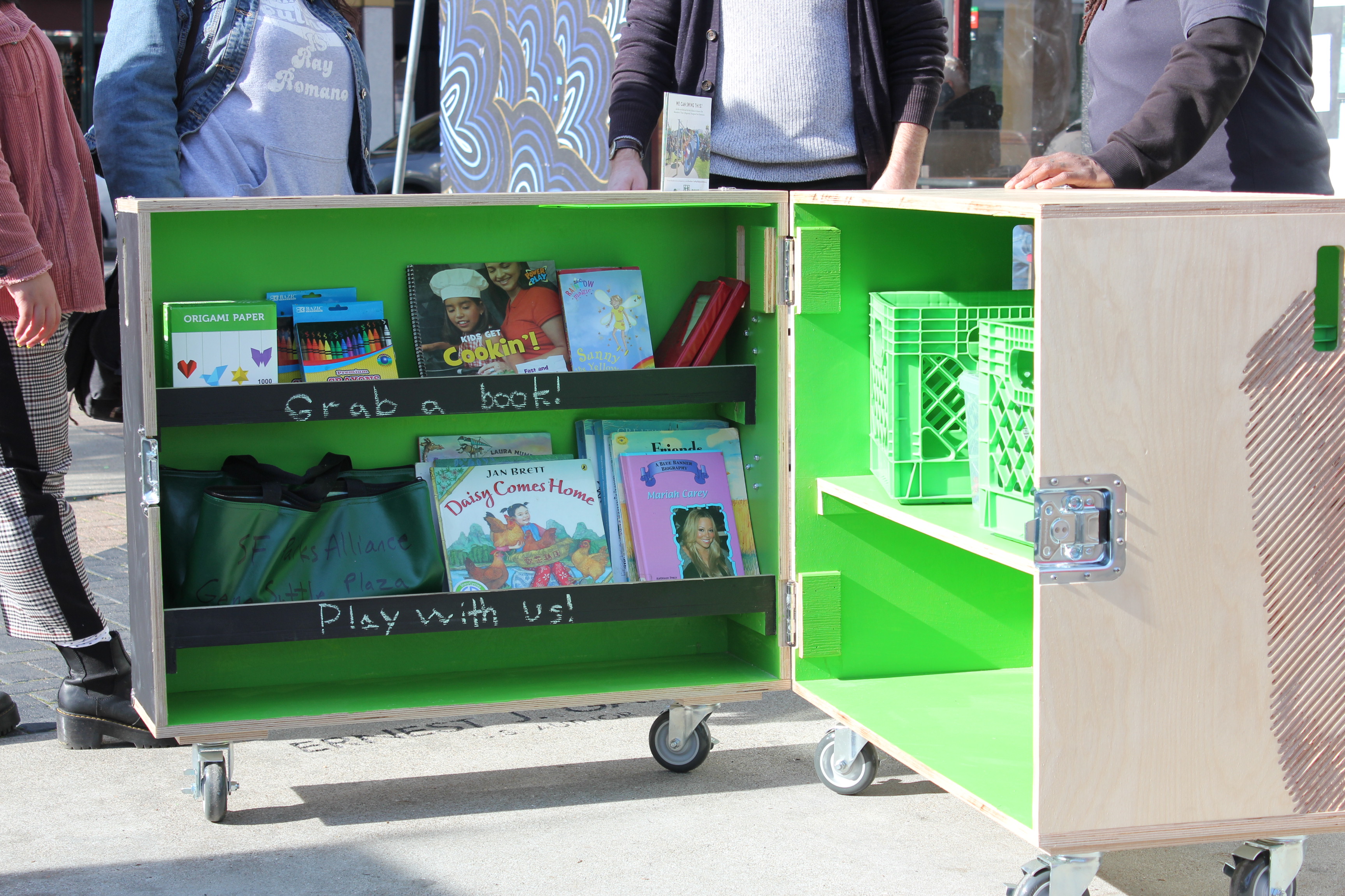 The PLAY cart is a curious mobile object that distributes games and books at Gene Suttle Plaza in San Francisco as part of a citywide public space initiative to reactivate spaces underused spaces. The cart was designed and fabricated by studiosideproject via CNC.